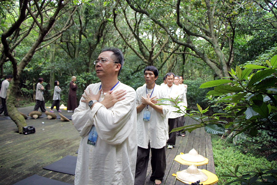 「深呼吸」、「眼觀鼻」、「鼻觀口」、「口觀心」、「心無所觀」………,隨著心道法師的音導,反覆修練著「吐納、攝心觀照、覺知出入息、聆聽寂靜」,不自覺心沉靜了,人放空了,自己宛如置身於渺茫的宙宇中,而林間的行禪、坐禪,則讓自己完全融合於大自然中,讚詠上天、大地、山、海,太美妙了!