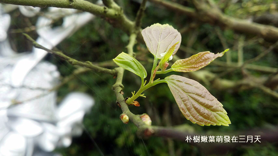 榆科的朴樹是落葉喬木,長得很高大開著細緻的黃色小花,果實尚未成熟之前是綠色的,大小跟BB彈差不多,是早期的民俗童玩,用竹管做成竹管槍,裝上朴樹的果實當子彈,以筷子輔助發射,三五好友就可以玩得很盡興又不會有受傷的疑慮,果實成熟轉為橙黃色,就成為小鳥的盤中飧。