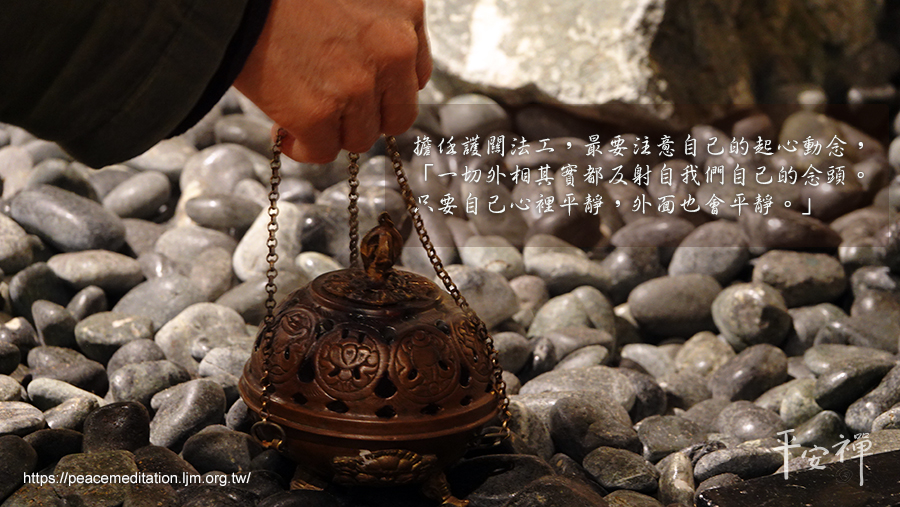 惟潔師姐認為,擔任護關法工,最要注意自己的起心動念,「一切外相其實都反射自我們自己的念頭。只要自己心裡平靜,外面也會平靜。」