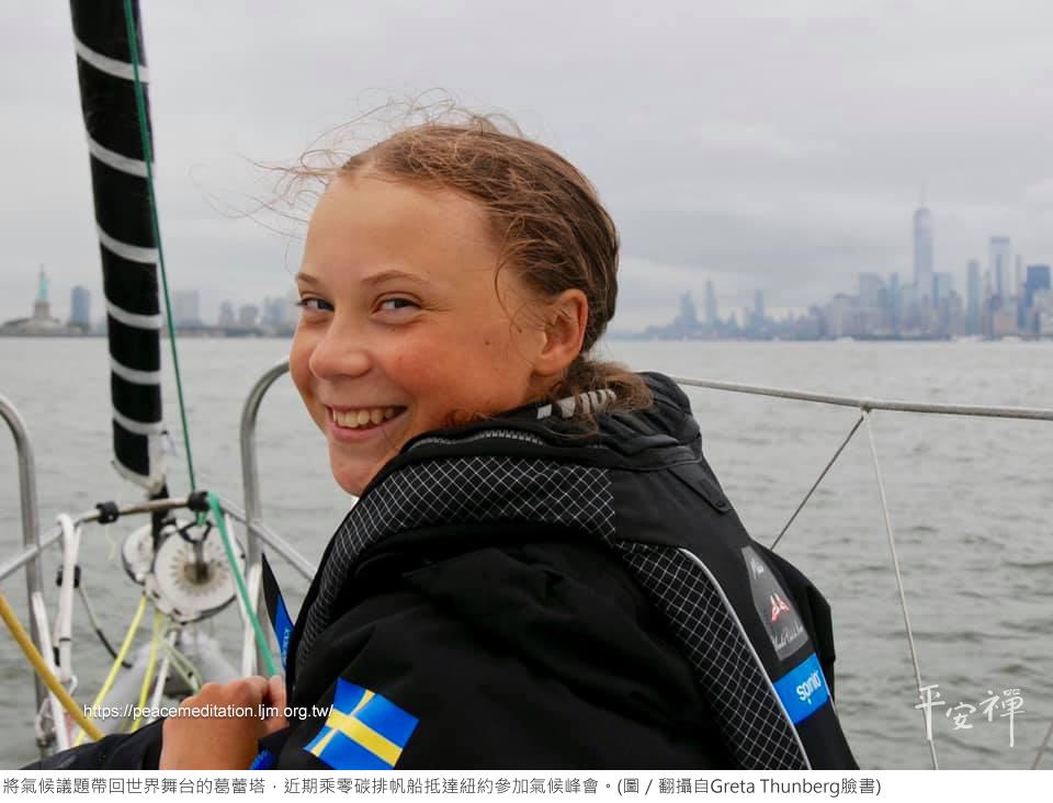 而為了參加9月底在紐約召開的聯合國氣候峰會,她更花了2週的時間,從英格蘭Plymouth乘船出發(以太陽能為動力的零碳排帆船)。