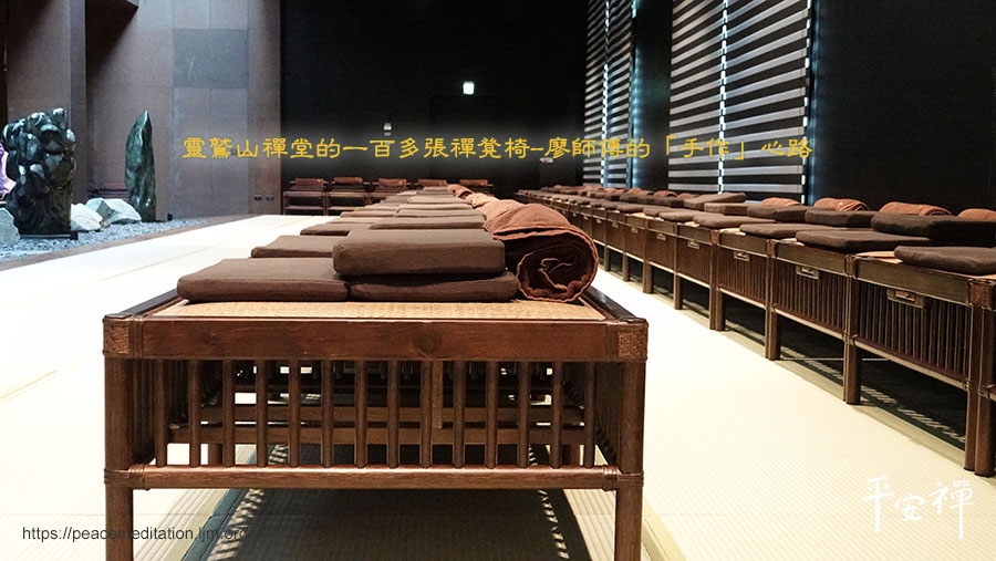 您今年上山打禪了嗎?從今年起,無生道場圓通寶殿一樓禪堂由席地蒲團改換為禪凳椅,無聲地為修行者提供更多的身心安定,這一批實用又美觀的禪椅,出自手作藤家具達人——廖勝典師傅之手。
