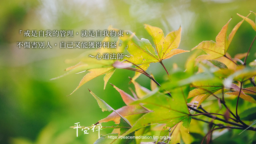 心道法師提醒:「戒是自我的管理,就是自我約束,不傷害別人,自己又能獲得利益。」遵守交通規則,能減少意外、保障生命,能讓交通不因突發狀況而堵塞,也可以避免人車衝突造成的憾事,因此,規則的意義在於保護所有行人、行車,並非是一種障礙、一座牢籠。