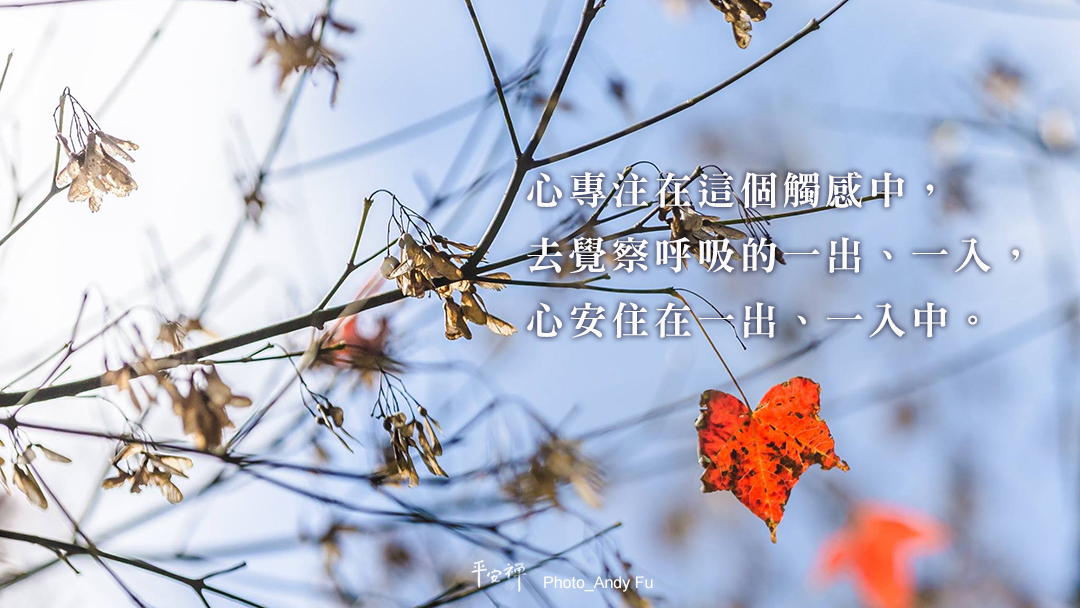 然後,深深地吸氣,緩緩地吐氣……去感受呼吸在鼻梁中的動態,感受呼吸進出鼻腔的觸感,是溫的?熱的?還是涼涼冷冷的?重點是那個觸感,要去感覺那個觸感。