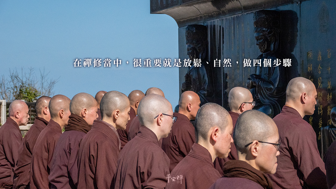 我們在禪修時,就是參悟本來面目,讓心慢慢附和我們覺性的條件,慢慢讓它回到覺性的面貌,慢慢把不是覺性的這些妄念執著放下。 我們知道妄念執著在作怪,只有把我們念頭放鬆了,執著也會沒有力量,妄念也不曉得在哪裡。 所以放鬆是很重要的,就是把每一個念頭都放鬆,不要去抓這些念頭。 在禪修當中,很重要就是放鬆、自然,做四個步驟,也就是「放鬆、自然,看著自己的覺性,看著自己,看著自己。」