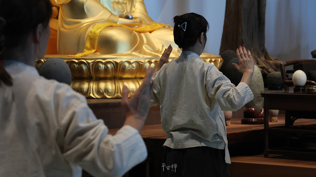 我是教養生、舞蹈的老師,開了三門課︰「覺知舒展養生運動」、「敦煌養生舞」和「敦煌舞」。心不放鬆,身體不可能放鬆,所以這次我帶著三十位學員一起來參加二日禪,來學習、體驗心的放鬆,並希望學員們能對自己的身心(尤其是心)有更深一層的覺察。