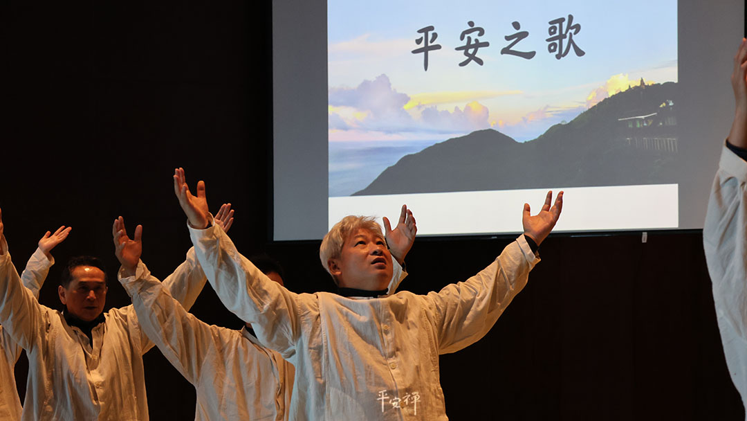「剛剛唱〈平安之歌〉時,剛開始我很歡喜,到後來變得很感動,尤其是擁抱自己的時候,因為前陣子我的身體不太好,我其實有發現,身體不好的原因是來自於自己的心病……今天的體驗,對我幫助很大。」