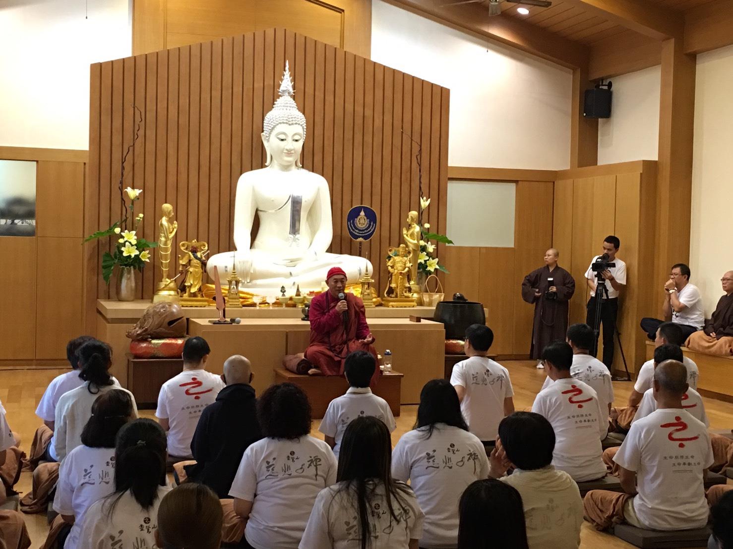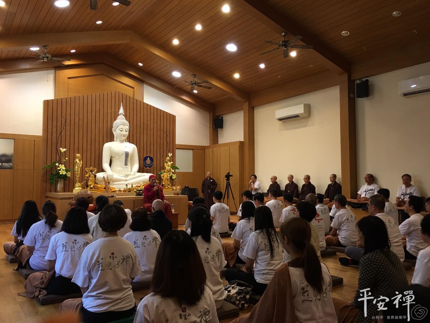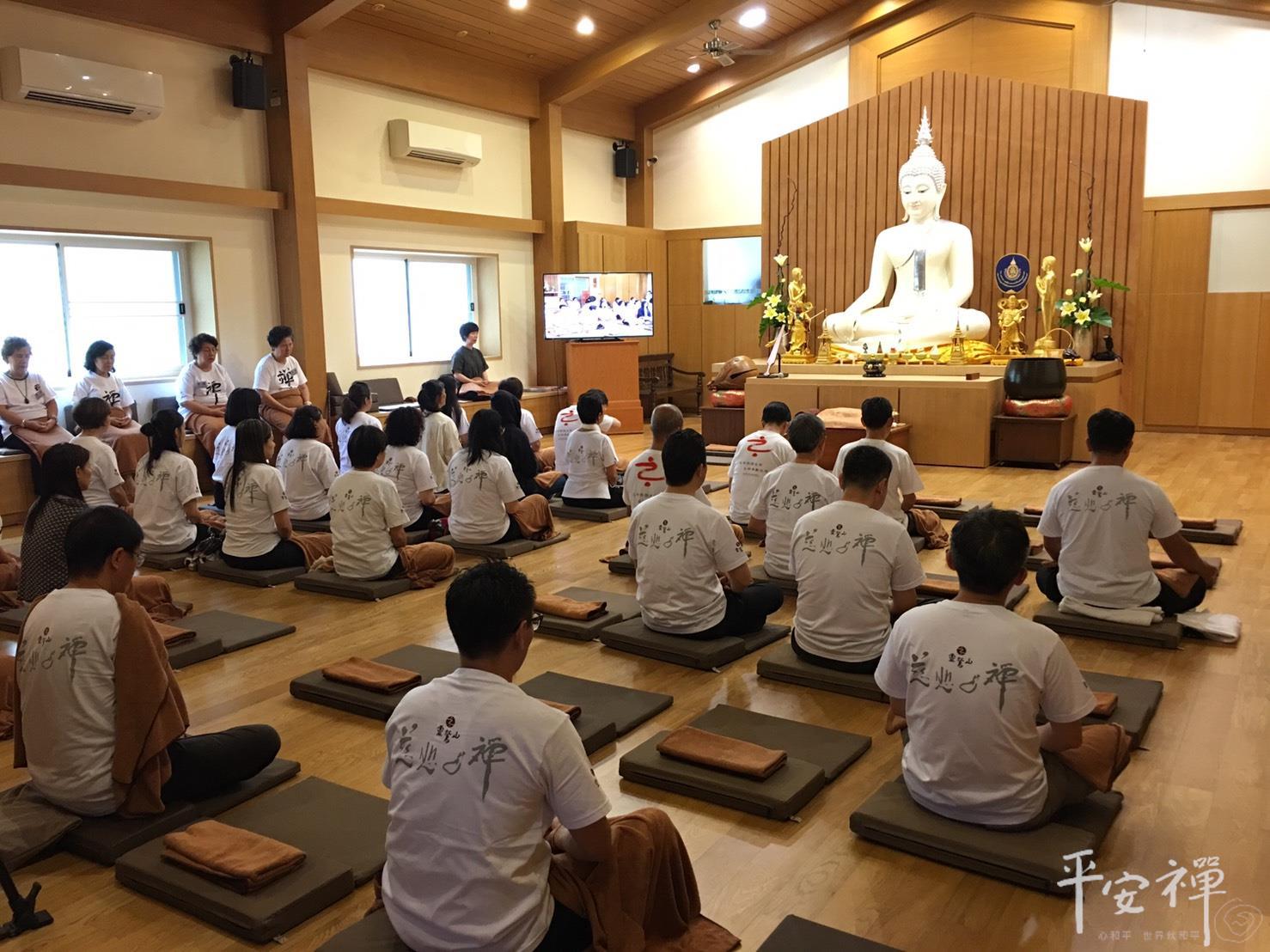 24日,泰國禪修平安一日禪,今日參與體驗平安禪的有來自泰國禪修中心幹部、榮董、企業主等五十幾名學員,由心道法師親自帶領傳授平安一日禪課程。