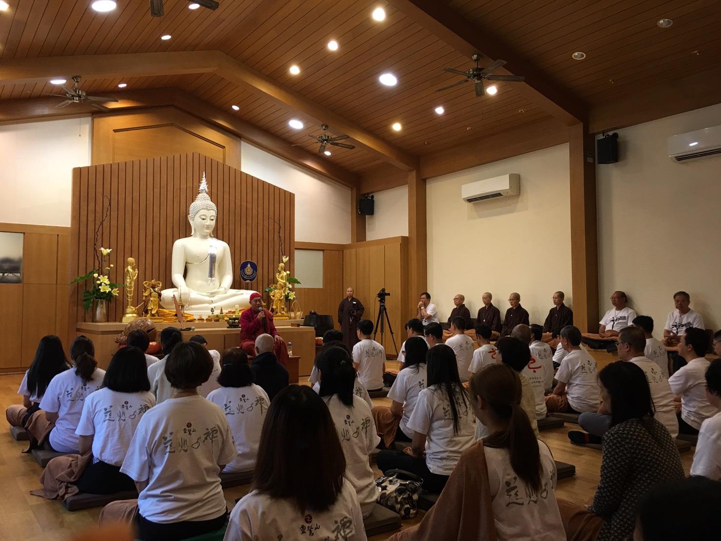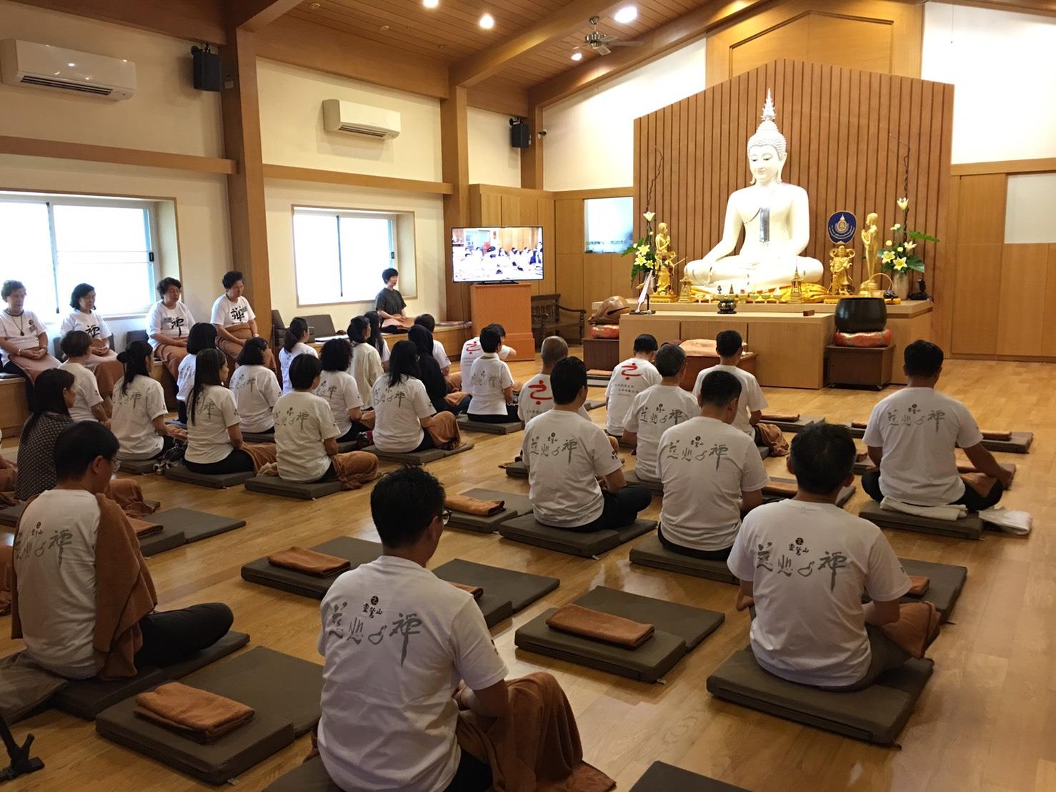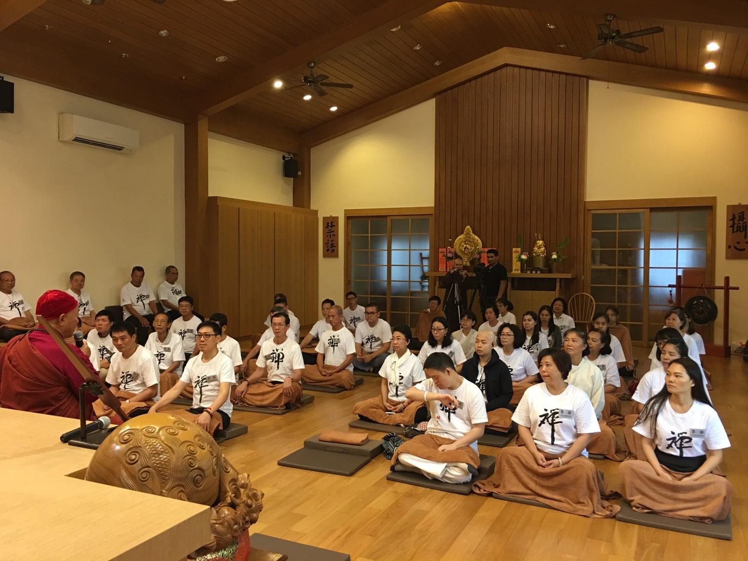 24日,泰國禪修平安一日禪,今日參與體驗平安禪的有來自泰國禪修中心幹部、榮董、企業主等五十幾名學員,由心道法師親自帶領傳授平安一日禪課程。
