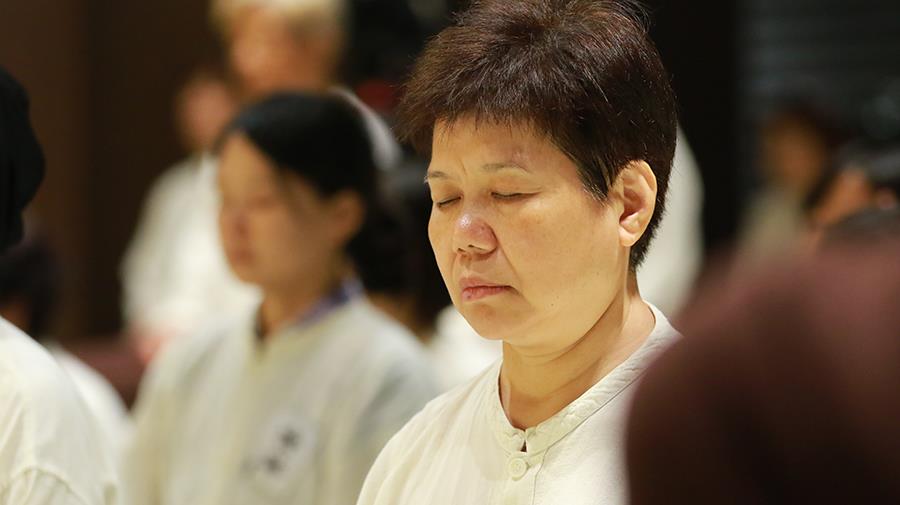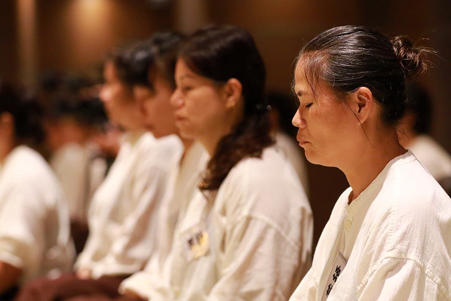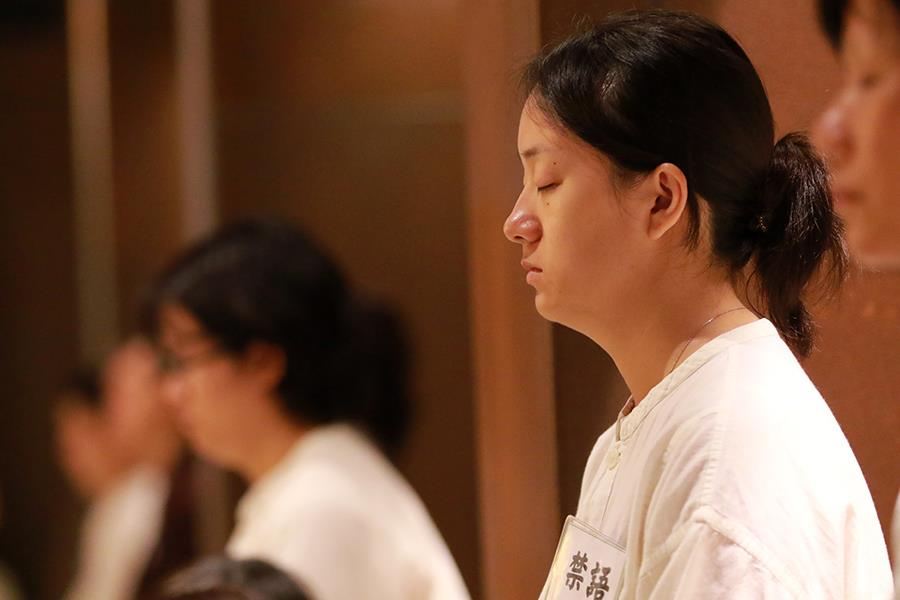 來自各方的九十位學員,有一半以上學員是第一次踏上靈鷲山;而這一梯禪三學員,對於「攝心禁語」這四個字的力量都深有感悟……這靜靜懸掛在靈鷲山各處的「攝心靜語」牌,可曾使你停下腳步、思考其中含意?